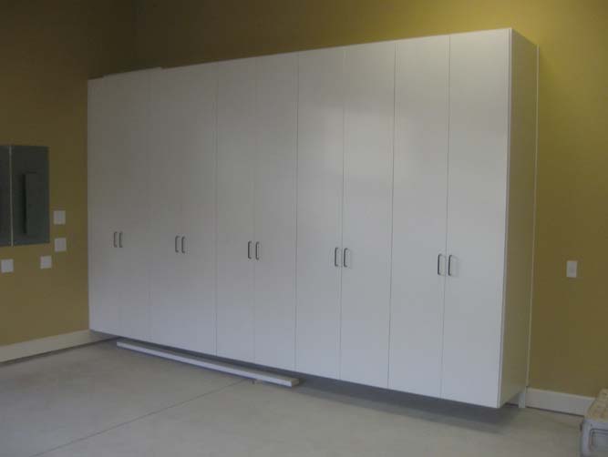 Johan Closets custom garage, shop, and cabinet storage systems.