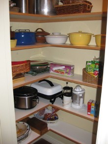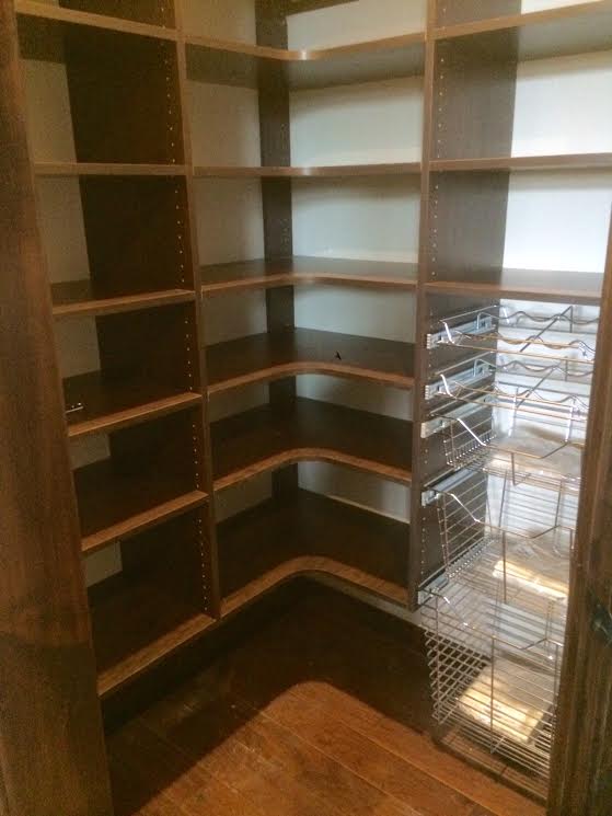 - Since most items are small in a pantry, Johan Closet Solutions prefers curved corners to avoid blind spots and eliminate restricted access. Curved corner shelves are also the most efficient use of space.